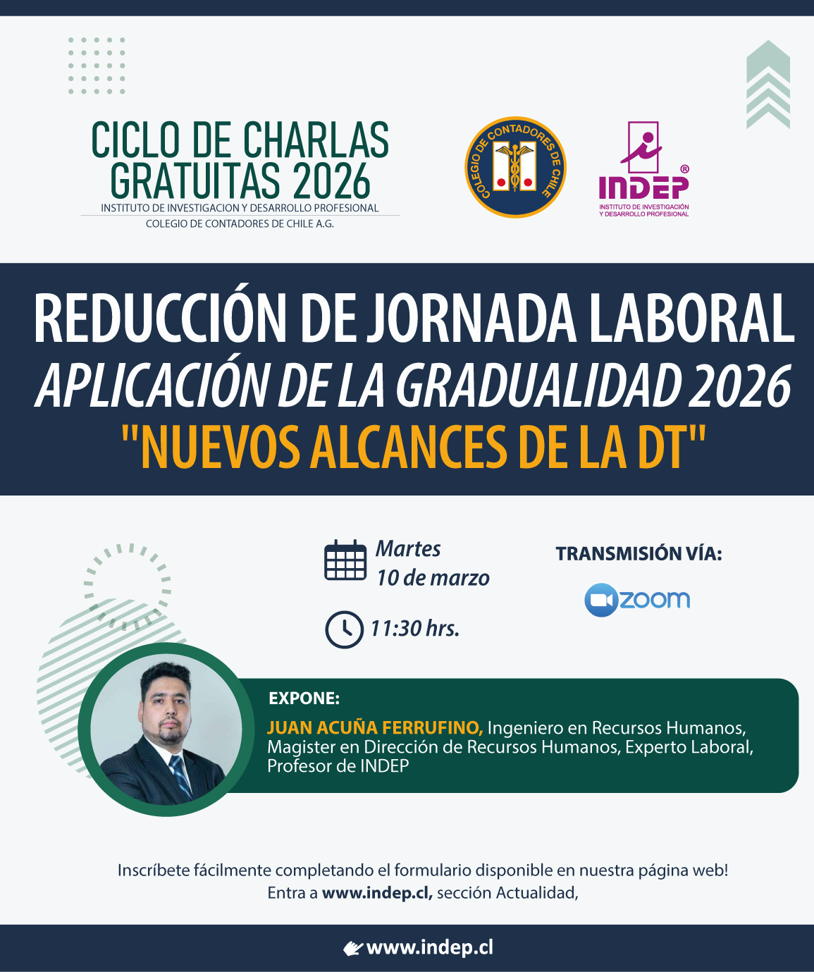 Charla Gratuita: Reducción de Jornada Laboral, Aplicación de la gradualidad 2026 "Nuevos alcances de la DT"