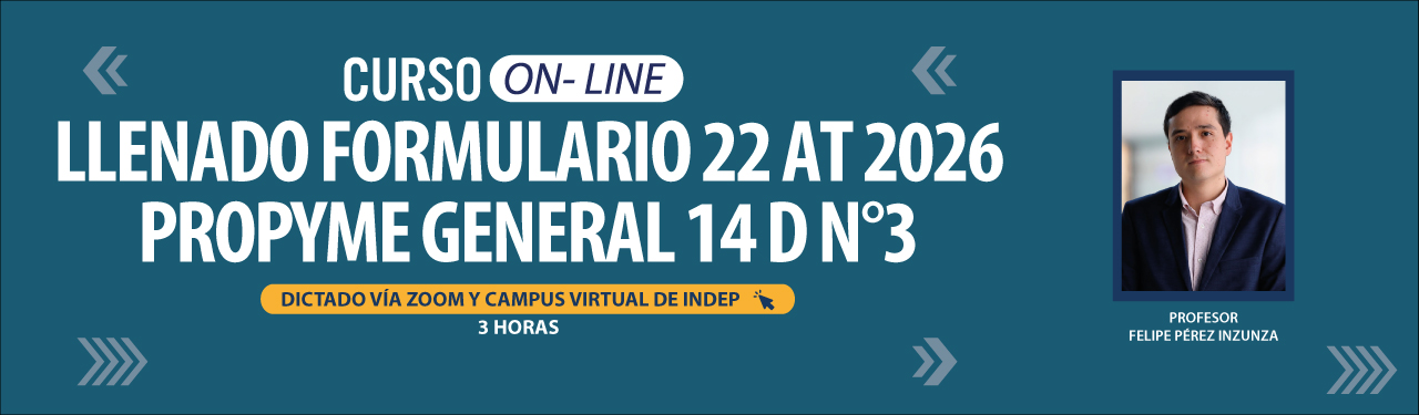 Usted se encuentra en: Curso Llenado Formulario 22 AT 2026 ProPyme General 14 D N°3 | v2 | Fecha de inicio 15-04-2026